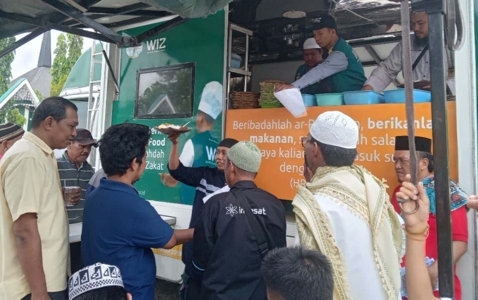 Kedatangan tim WIZ disambut baik oleh jamaah masjid. Mereka tampak sangat antusias menerima santap siang gratis dari donatur WIZ.